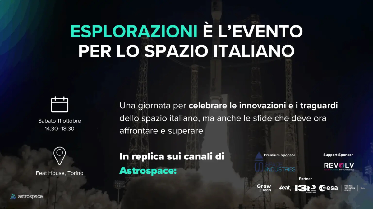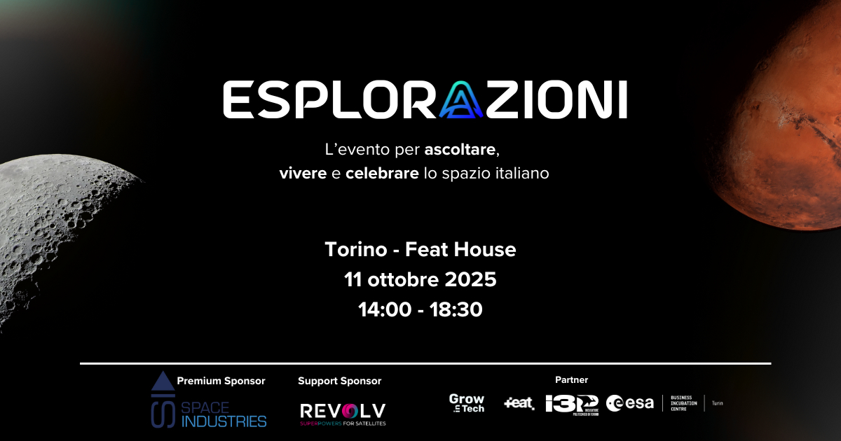 Esplorazioni 2025 is Astrospace's new event entirely dedicated to storytelling, discussion, and debate on Italian and international space exploration. The event will take place on Saturday, October 11, in Turin, Italy, at Feat. House - a venue created specifically to generate opportunities for networking and discussion - from 2:30 p.m. to 6:30 p.m.