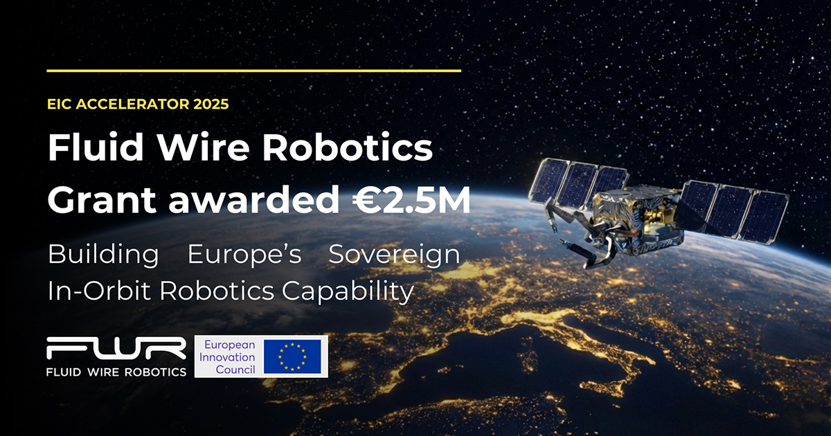 The EIC Accelerator is the European Union’s flagship programme for high-impact, high-risk innovation in start-ups and SMEs. In one of its most competitive calls, the challenge titled “Innovative in-space servicing, operations, robotics and technologies for resilient EU space infrastructure”, Fluid Wire Robotics has been selected as one of a small group of European companies entrusted with strengthening the resilience of EU space infrastructure.