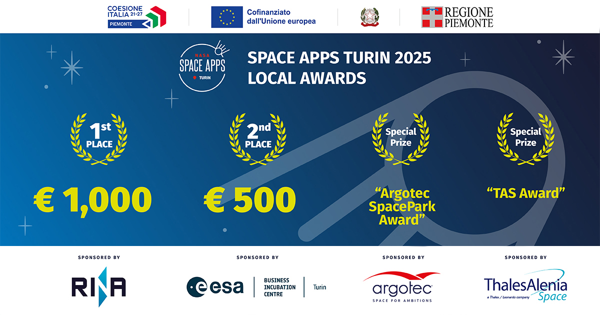 The first prize in the competition, worth €1,000 in vouchers, is sponsored by RINA, multinational group of engineering consulting, inspection, and certification. The award will be presented by the Space Apps Turin 2025 jury to the team that submits the project deemed best among all those developed during the local hackathon, according to the global evaluation criteria specified by NASA.